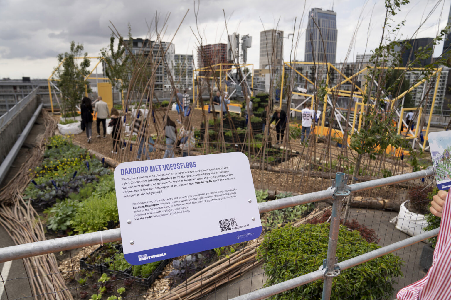 Kleinschalig wonen in de binnenstad en je eigen voedsel verbouwen is een droom voor velen. Zo ook voor Stichting Dakdorpen. Zij zijn op dit moment bezig met de realisatie van een echt dakdorp op gebouw De Kroon in Rotterdam West. Op de parkeergarage van de Rooftop Walk verbeelden zij hoe een dakdorp er uit zou kunnen zien. Van der Tol BV heeft daar een heus voedselbos aan toegevoegd.