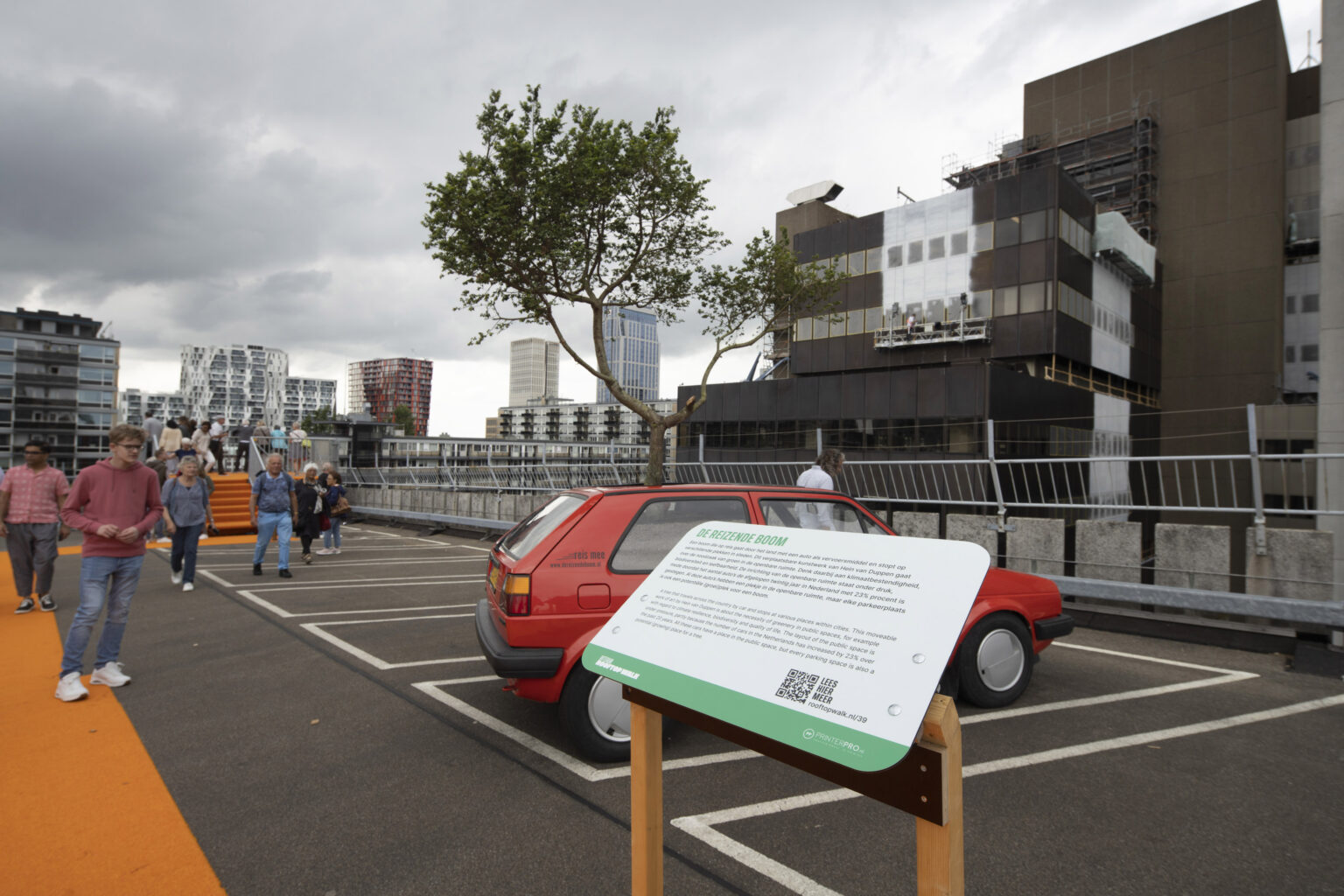 Een boom die op reis gaat door het land met een auto als vervoersmiddel en stopt op verschillende plekken in steden. Dit verplaatsbare kunstwerk van Hein van Duppen gaat over de noodzaak van groen in de openbare ruimte. Denk daarbij aan klimaatbestendigheid, biodiversiteit en leefbaarheid. De inrichting van de openbare ruimte staat onder druk, mede doordat het aantal auto’s de afgelopen twintig jaar in Nederland met 23% procent is gestegen. Al deze auto’s hebben een plekje in de openbare ruimte, maar elke parkeerplaats is ook een potentiële (groei)plek voor een boom.